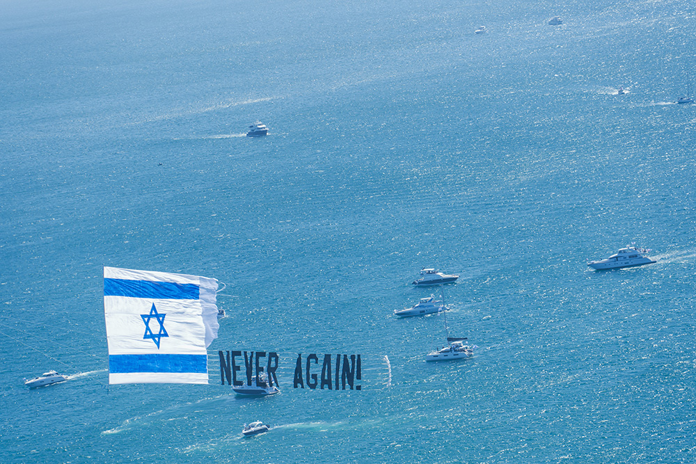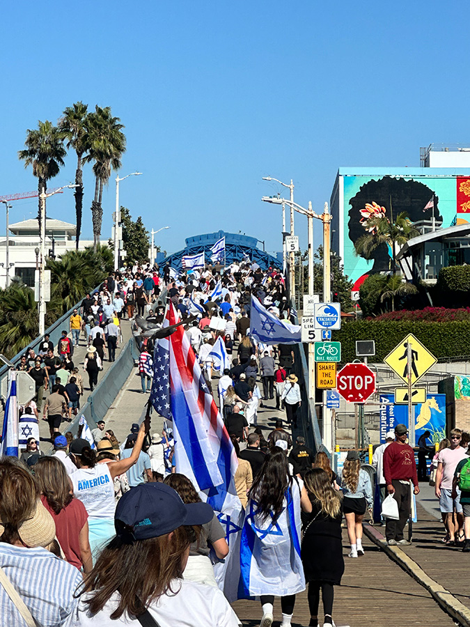 מעל אלף איש הגיעו ביום ראשון ה-29 באוקטובר לחוף סנטה מוניקה להפגנת תמיכה בישראל, חלקם הגיעו ב-35 יאכטות בשיט שאורגן על ידי ורד אלקובי. האירוע שהופק על ידי עדי דרורי, גליה וצביקה דהרי כלל מפגן אווירי מרהיב שהובל על ידי גיל לי פז Tiger Squadron Formation Flying Team. היה מרגש מאוד לראות את טייסי המסוקים צפריר אביעזר ושאבי כהן חגים בשמי לוס אנג'לס עם באנר עליו נכתב: Never Again.