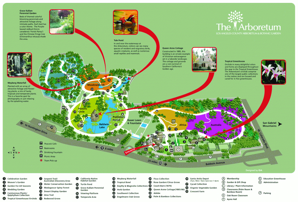הגן הבוטני שנמצא בעיר ארקדייה, אשר במחוז לוס אנג'לס הוא אחד מהפרקים היפים והמרשימים בחוף המערבי, הגנים משתרעים על כמאה עשרים דונם של יערות, מפלים, בריכות ומדשאות.