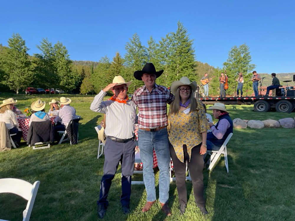 הקונסול הכללי ניומן ביחד עם אשתו אילה ניומן, ביחד עם מושל יוטה, ספנסר קוקס, בחווה פרטית, בהזמנה של מושל יוטה