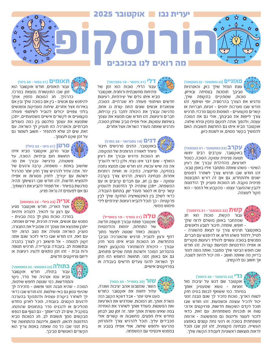 הורוסקופ – אוקטובר 2025