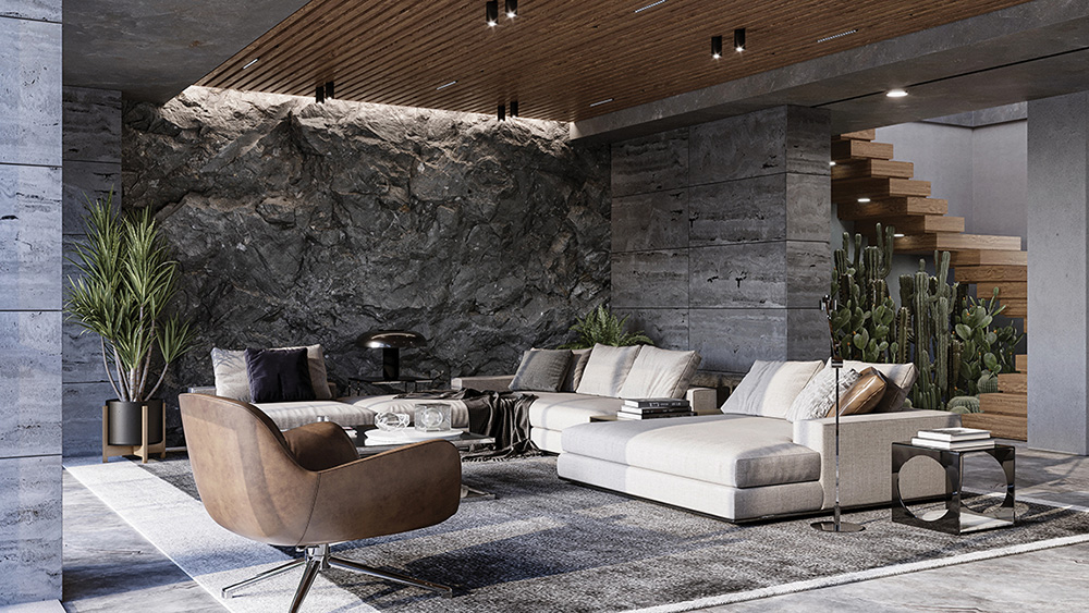סלון – ספה מרווחת ושולחן קפה בגודל מתאים לחדר. פינות ישיבה נוספות כמו כורסאות או פופים יכולים ליצור חלל מזמין.