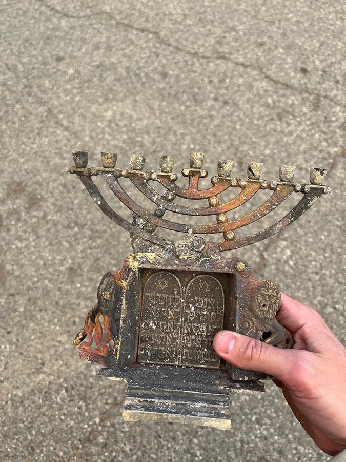 החנוכיה שנמצאה בהריסות הבית | צילומים באדיבות: ג'וש קוטלר