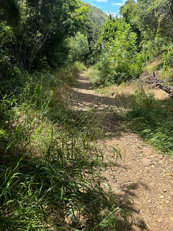 ממגרש החניה ממשיכים ללכת בדרך רחבה ומסודרת שמטפסת לאורך הערוץ מתחת לחופת העצים. בהמשך ממש לפני המפל, אתם מגיעים אל חורבות של ה- רוברטס ראנץ האוס, אחוזה מהממת שנבנתה בשנת 1952 ונכחדה בשריפה שפרצה במקום ב 1984. בחצר האחורית נמצא מפל מים מרהיב שיוצר בריכה יפה וצלולה. זהו מקום מצויין לעצור למנוחה או פיקניק לפני שאתם שבים חזרה אל תחילת המסלול ומגרש החניה. אורך המסלול: 2.8 מייל, כ- 4.2 ק"מ הלוך ושוב. רמת הקושי: קל-בינוני.