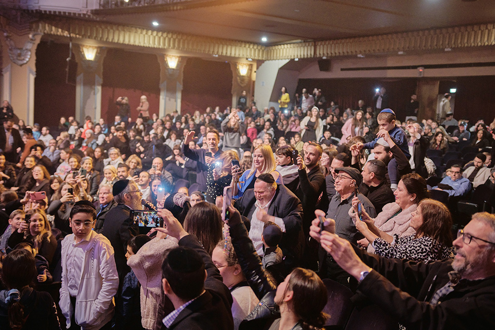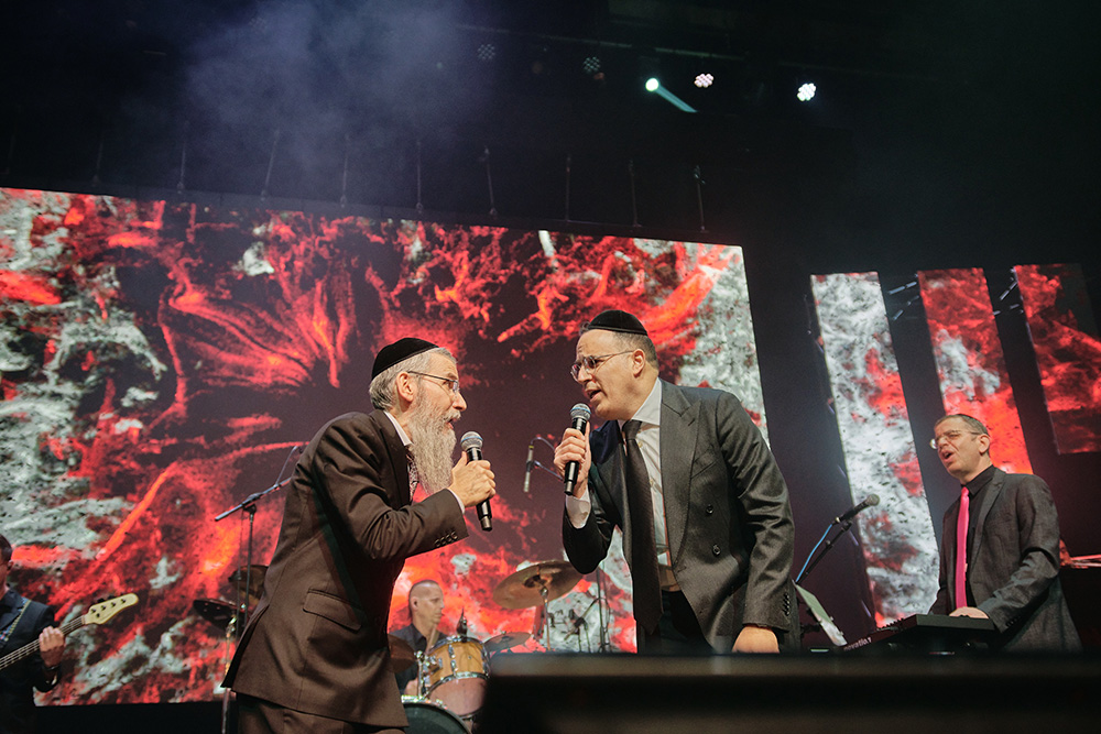 ביום שני ה-15 בינואר הופיעו בלוס אנג'לס אברהם פריד ויעקב שוויאייקי, שניים מהזמרים המובילים בעולם החרדי/דתי בתיאטרון סבן בבוורלי הילס. למעלה מ-2000 איש הגיעו להופעה ולא הפסיקו לקפוץ, לרקוד ולשיר. מפיקי הקונצרט Eisen Production & LG Enterprises בבעלותם של עינב וישראל אייזן וליאור גוב, מסרו כי האירוע הוקדש לאסון נובה ב-7 באוקטובר ומתוך כוונה להעלות את המודעות לחטופים הישראלים. עמדה באולם כללה פוסטרים של החטופים, שלטים עם אמרות ממוקדות, דסקיות: הלב שלנו בעזה ועוד. | צילם: אברהם יוסף פאל