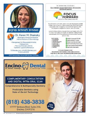 COMPLIMENTARY CONSULTATION AND DIGITAL INTRA ORAL SCAN Comprehensive & Multispecialty Dentistry Predictable Dentistry using State of the Art Technology 41 www.weareinamerica.com To Advertise please call: 818-654-2515