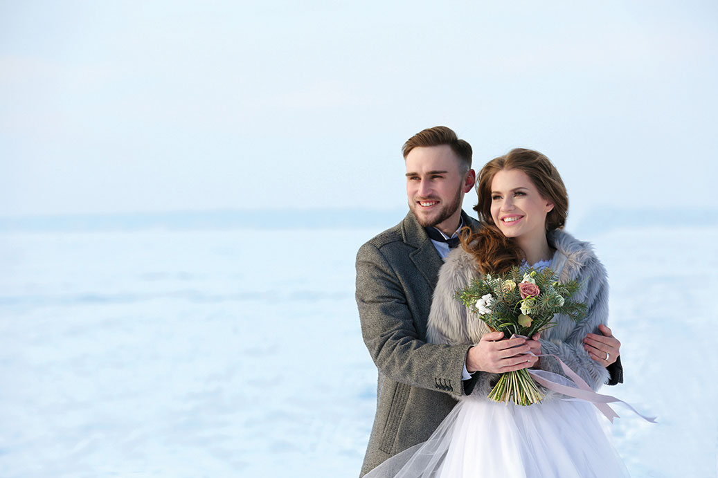 השלג הצחור מהווה תפאורה נפלאה ומלכותית לחתן והכלה כפי שניתן לראות מהתמונות שלפניכם: